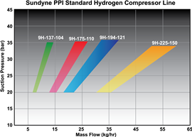 Los nuevos compresores abarcan un rango de presión de succión de 20 bar (290 psi) a descarga de 550 bar (8000 psi), con caudales de 10 kg/h (22 lb/h) a 60 kg/h (132 lb/h). Cada compresor puede suministrarse conforme a las normativas norteamericanas o europeas. Entre las opciones disponibles se incluyen un sistema modular de refrigeración líquida de circuito cerrado y diferentes diseños de carcasa para instalaciones que requieren protección contra la intemperie.