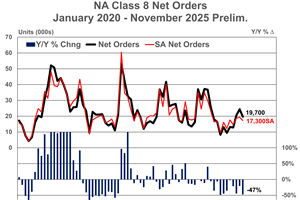 Los datos preliminares muestran que los pedidos de la Clase 8 se desplomaron un 47% en medio de las dificultades de rentabilidad de las aerolíneas.