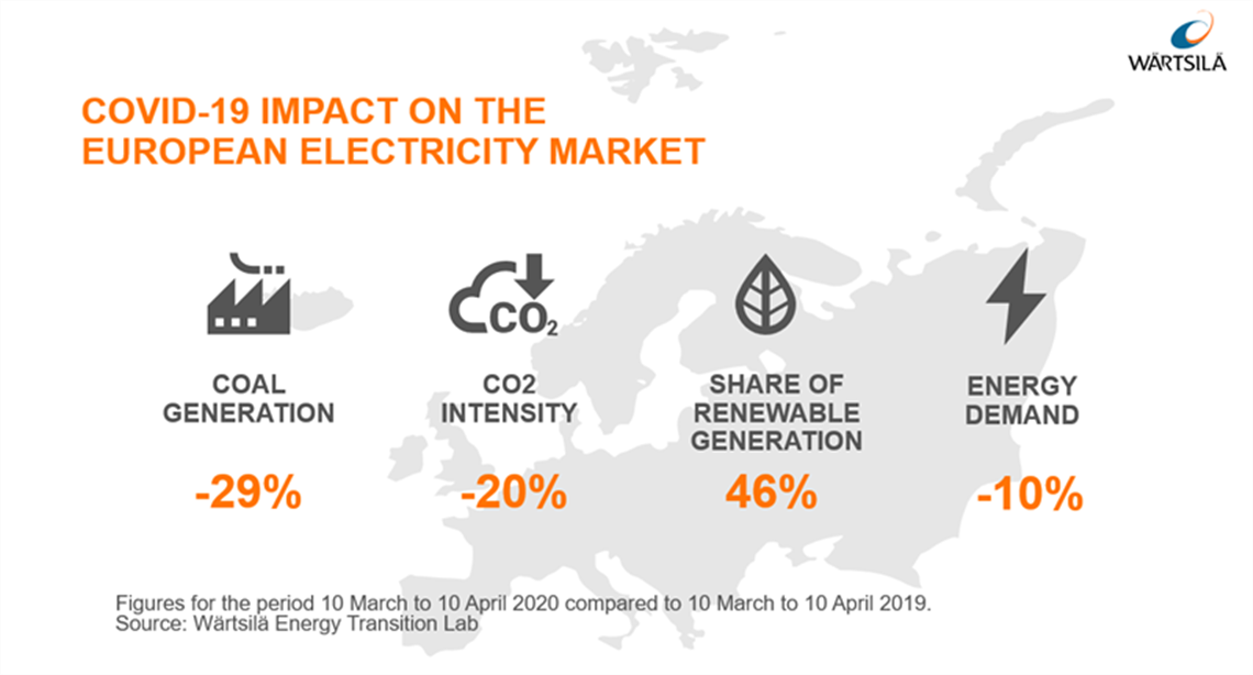 “The impact of the Covid-19 crisis on European energy systems is extraordinary,” said Björn Ullbro, vice president for Europe & Africa at Wärtsilä Energy Business. “We are seeing levels of renewable electricity that some people believed would cause systems to collapse, yet they haven’t – in fact, they are coping well. The question is, what does this mean for the future?