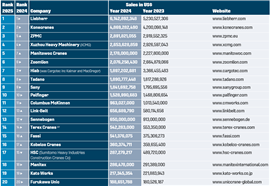 Konecranes in second place also posted a rise, of 6.6 % but the gap to the leader has widened. Chinese port and industrial crane maker ZPMC in third place, managed to gain two despite a 3 % decline in sales. Next, XCMG maintained its 4th place even with its aforementioned almost 11 % decline in sales.