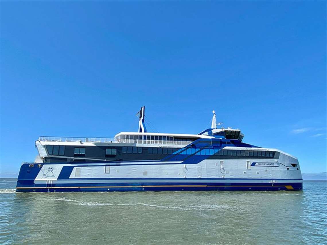 The 16-cylinder MTU Series 4000 engines each have an output of 1492 kW and help the vessel reach a top speed of 14 knots. Together with its sister ship Willem de Vlamingh, which will go into service in summer, the ferries will shuttle in the Wadden Sea between Harlingen in the Netherlands and the islands of Vlieland and Terschelling. The 70-m long ferries can carry up to 600 passengers.