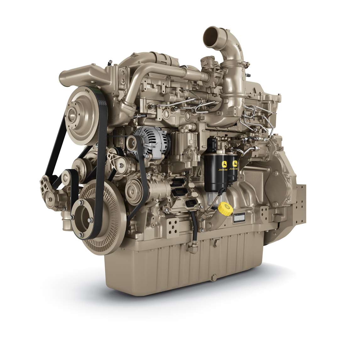 This new engine is equipped with John Deere engine controls, a high-pressure common-rail fuel system and series turbochargers and utilizes cooled EGR. The model-based controls will enable advanced prognostics capabilities and improved transient response, Deere said. A rear gear train is designed to reduce noise as well as torsional and crank stress.