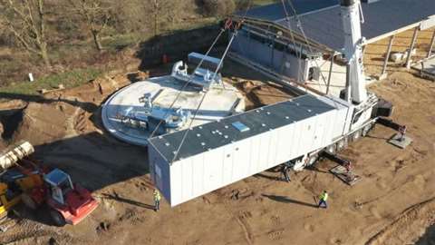 Delivery of a container for the cogeneration power plant with gas engine in Alfhausen. (Photo: Rasche & Weßler GmbH)