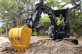 Nova minicarregadeira com operador a bordo