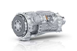 A transmissão suporta o funcionamento híbrido em veículos pesados.
